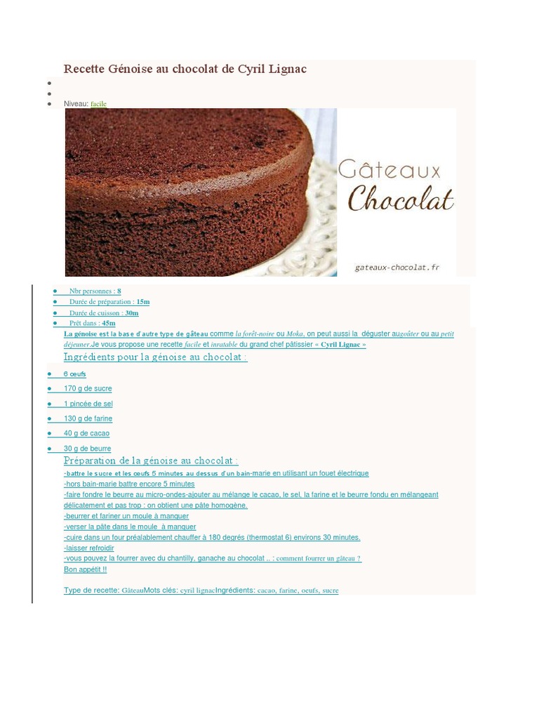 Cyril Lignac Recette Genoise Au Chocolat Pdf